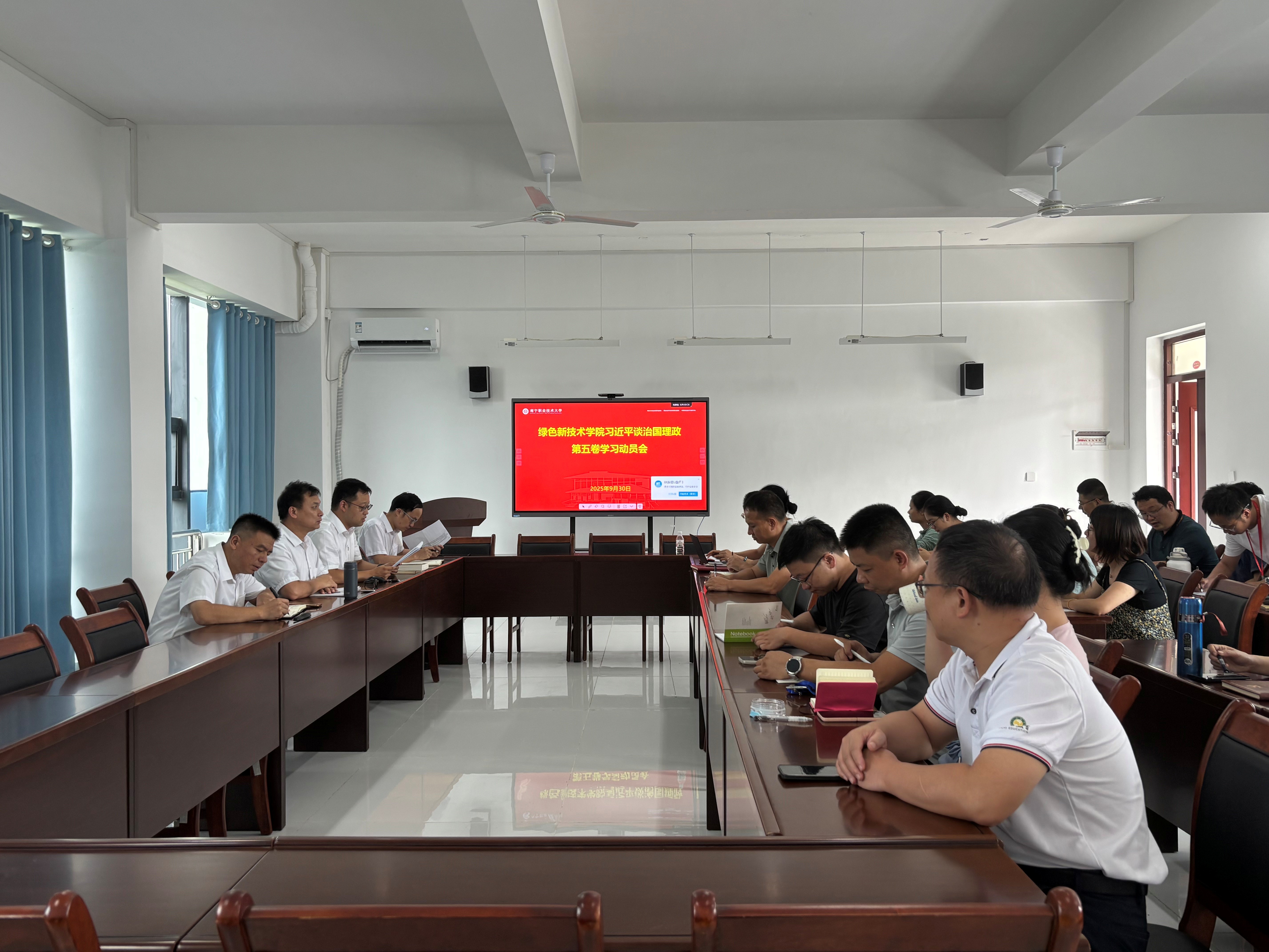 9月30日下午,学院党委在学院会议室召开全体教职工会议,集体学习《习近平谈治国理政》第五卷。