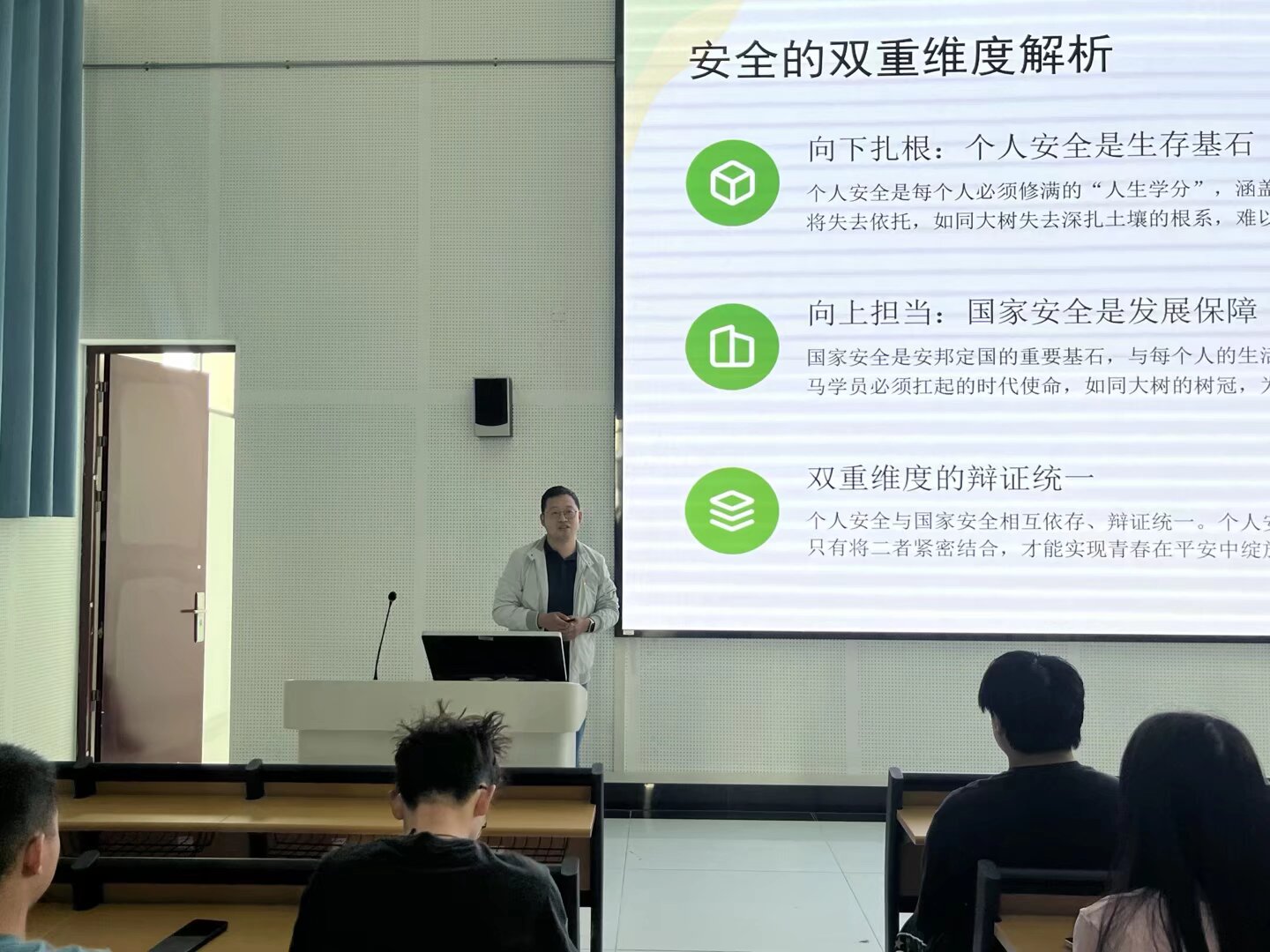 罗金书记围绕个人安全与国家安全双重维度进行授课(杨倩/摄)