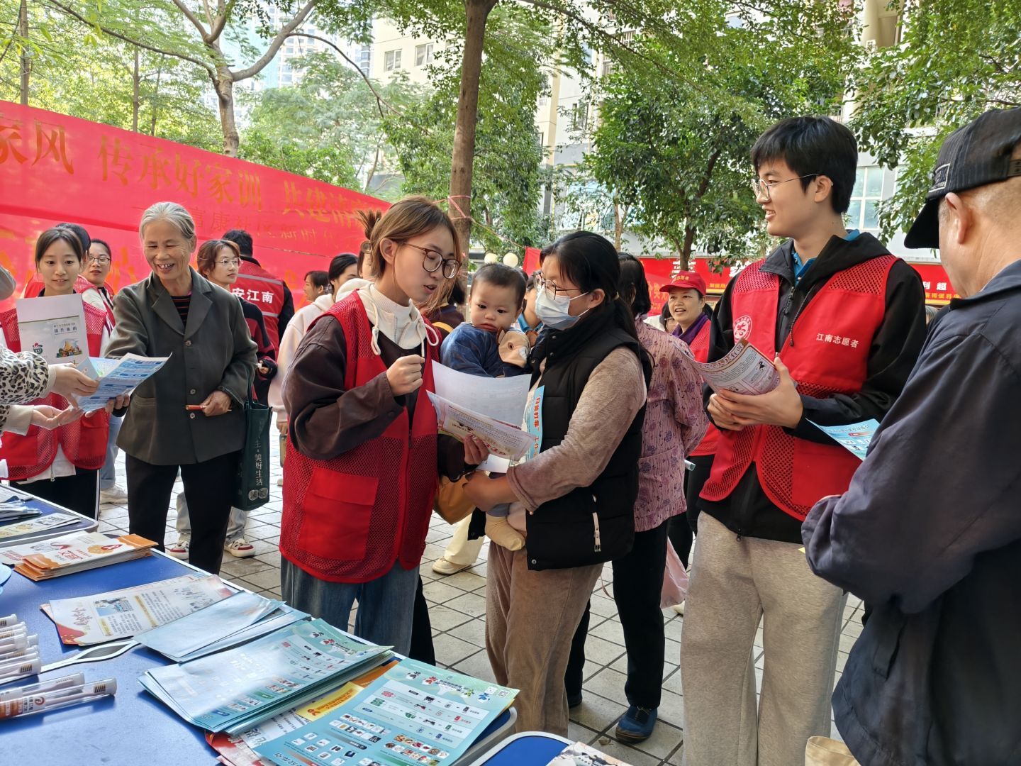 志愿者们正在宣传防范网络电信诈骗和预防一氧化碳中毒(苏崇文/摄)