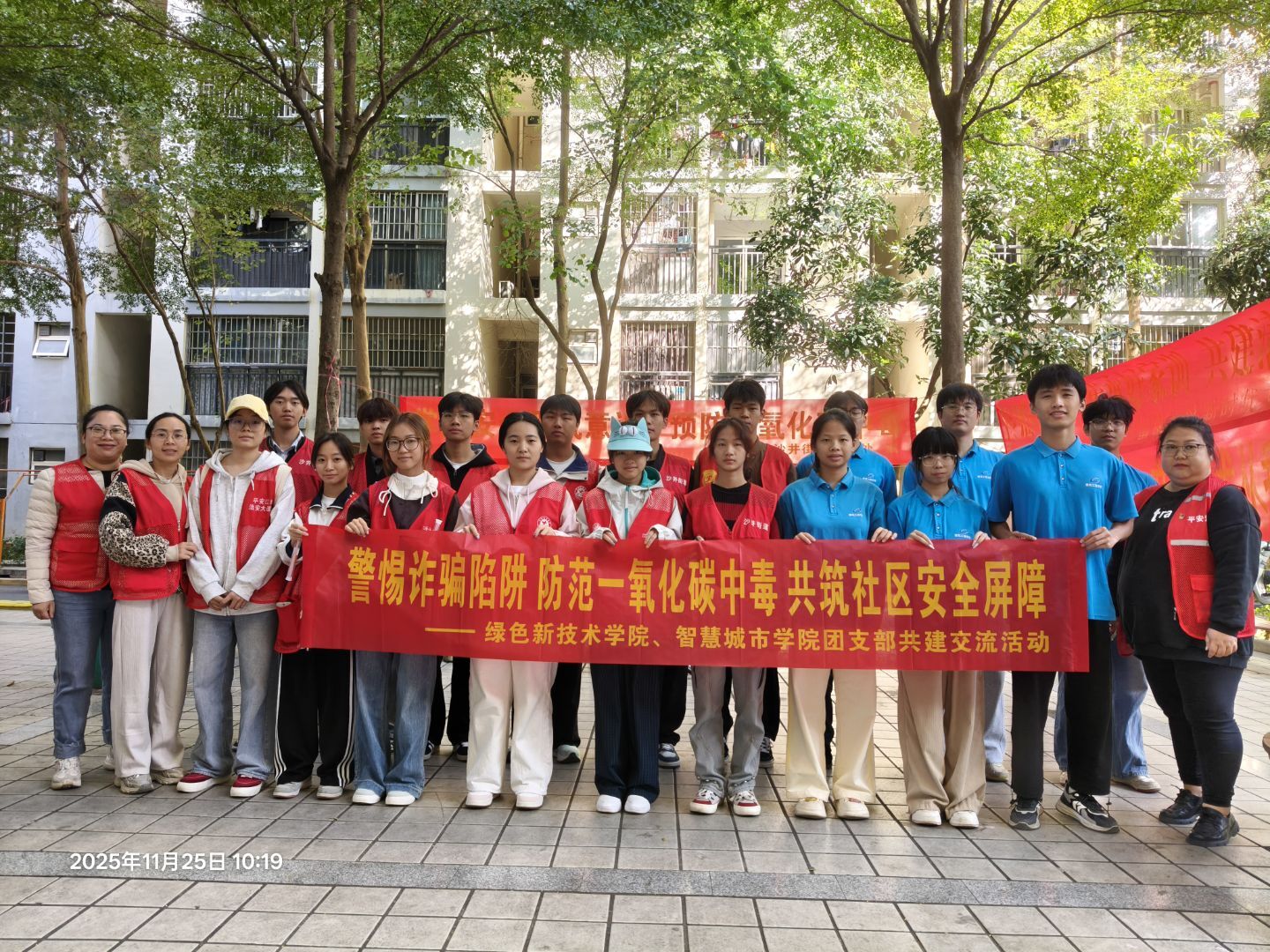 2025年11月25日早上,绿色新技术学院、智慧城市学院学生社区团支部开展团支部共建交流活动,共同走进南宁市江南区富康社区开展志愿服务活动。