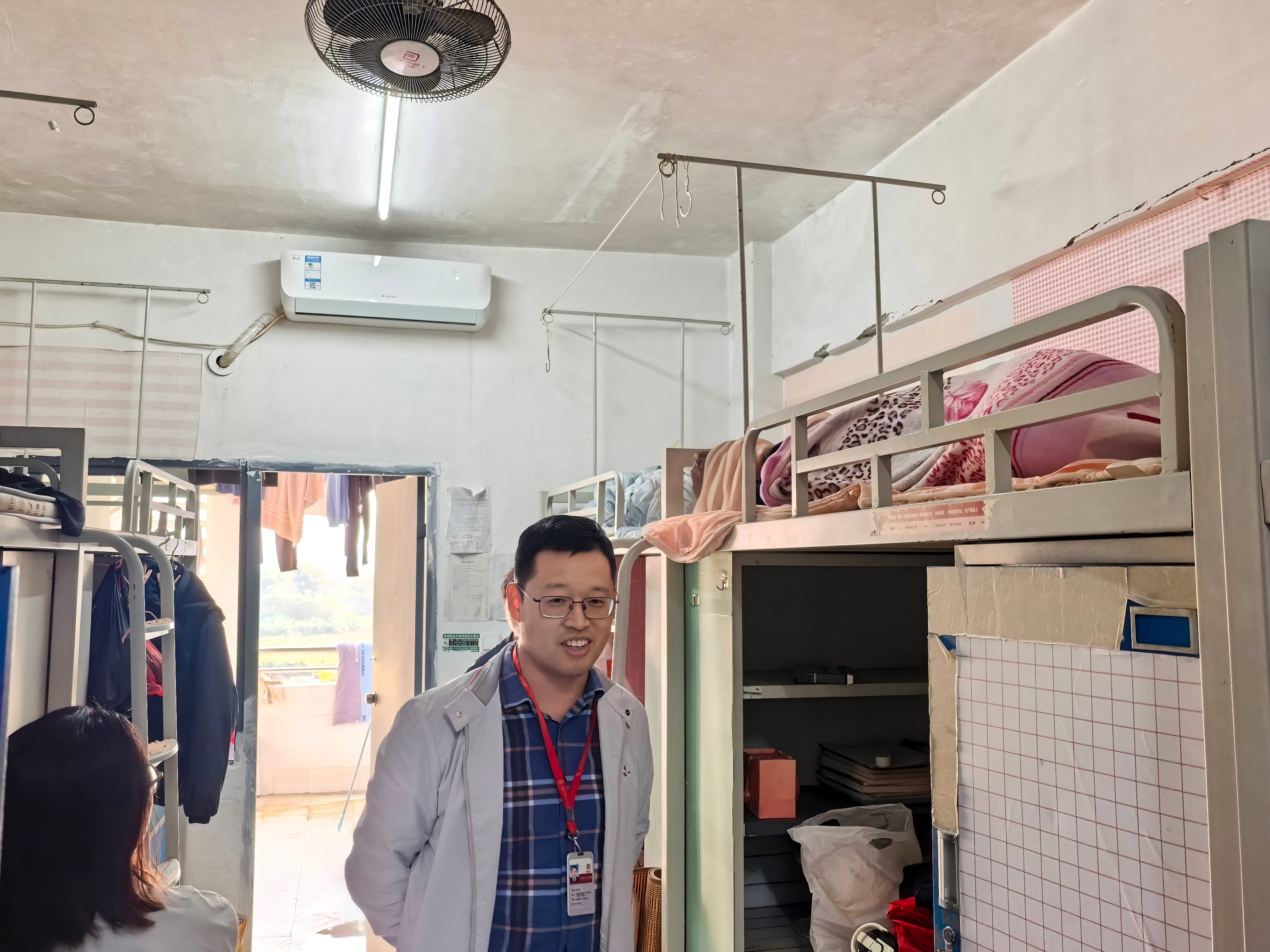 走访过程中,学院领导与同学们亲切交谈,细致询问期末备考进展、日常生活需求及寒假安排,认真听取大家对宿舍管理、生活服务等方面的意见建议。罗金书记叮嘱同学们在紧张复习期间注意劳逸结合,做好防寒保暖,并勉励大家保持规律作息,共同营造整洁温馨、互助向上的宿舍氛围。