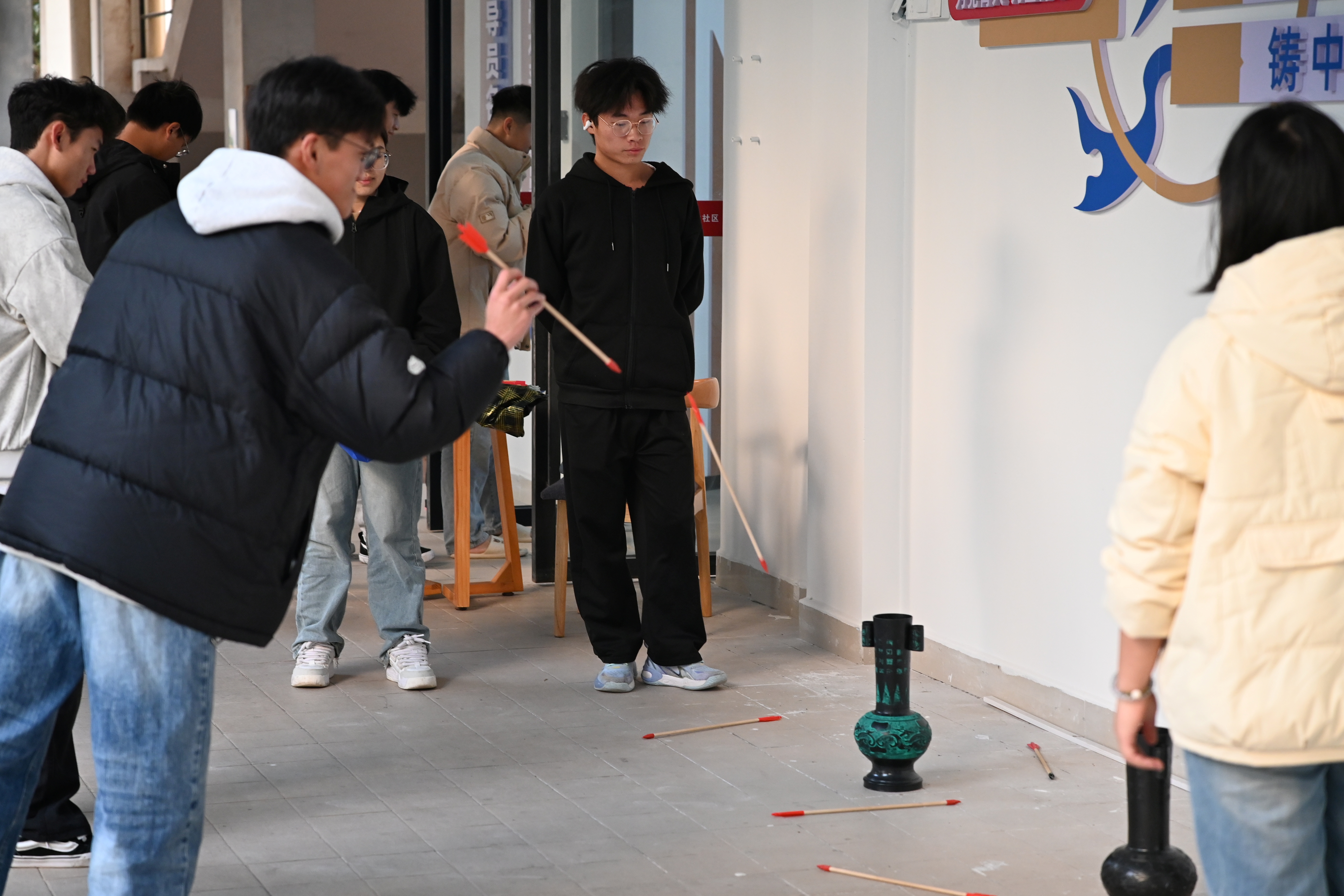 同学们正在进行投壶游戏(蒋家勇/摄)