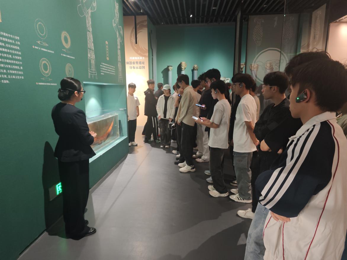 活动现场,博物馆专业讲解员带领师生们有序参观,重点走进“吉金万里——中国西南地区青铜文明展览”。展区内,一件件造型精美、纹饰繁复的青铜器静静陈列,从青铜礼器到生产工具,从装饰器物到实用器具,讲解员结合出土背景、历史典故,生动讲述了西南青铜文明的起源、发展与传承脉络,让学生们沉浸式感受古老文明的璀璨与厚重。