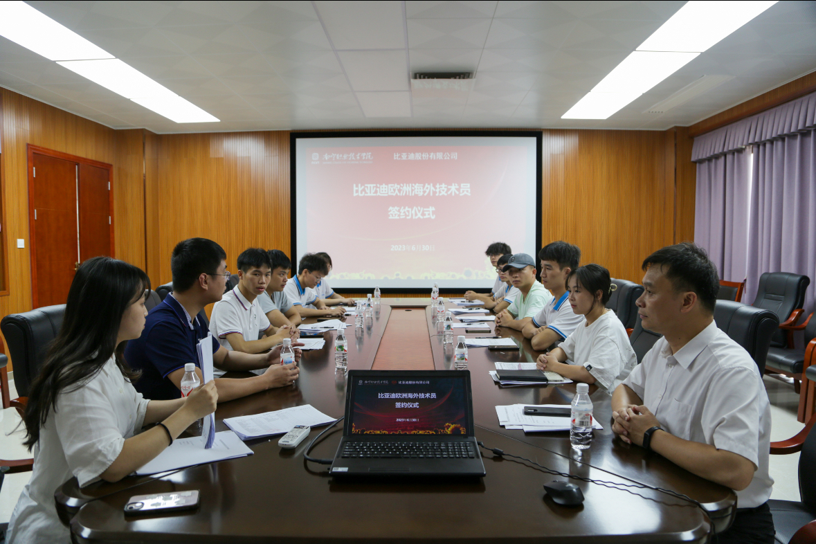 与比亚迪、上汽通用五菱、广西宁福新能源科技有限公司等 15家知名企业建立深度合作,共建“新能源汽车联合实验室”“校外实践基地”等10个实训基地和实验室,开展“产学研”协同育人。学生可参与企业实习、项目研发、订单式培养等,年均组织企业参观、专家讲座等校企活动超10场,提升实践与就业竞争力。面向社会开展了新能源汽车动力电池工作原理专题培训、新能源汽车动力电池拆装专题培训、新能源汽车动力电池检测与维修专题培训,培训达2728人次。